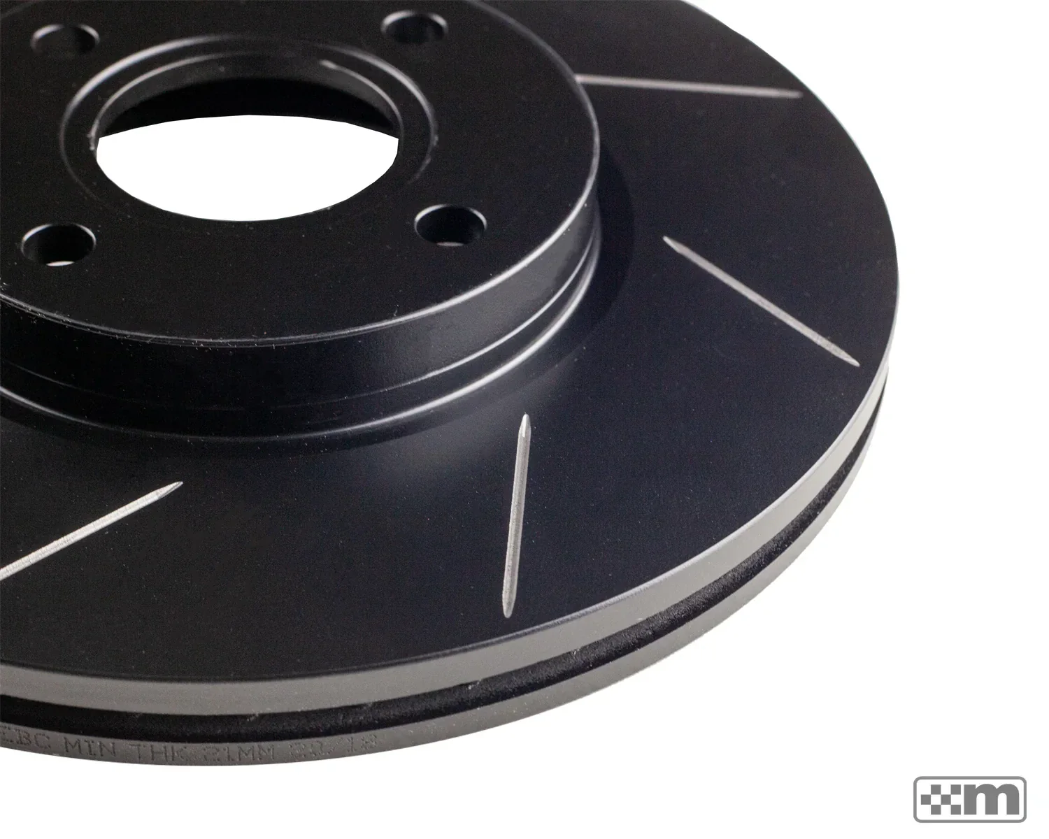 The mountune Front Grooved Brake Disc Upgrade features a corrosion proof thermic black coating and a precision-machined 8-groove design to help deglaze the brake pad face and help promote even pad wear.